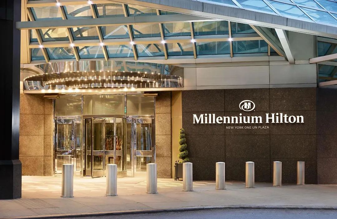 The Millennium Hilton New York One UN Plaza is directly across from the United Nations headquarters and three blocks from Grand Central Station, providing easy access to major landmarks such as the Empire State Building and Rockefeller Center. Nearby transport options include subway stations and bus stops within a short walking distance.