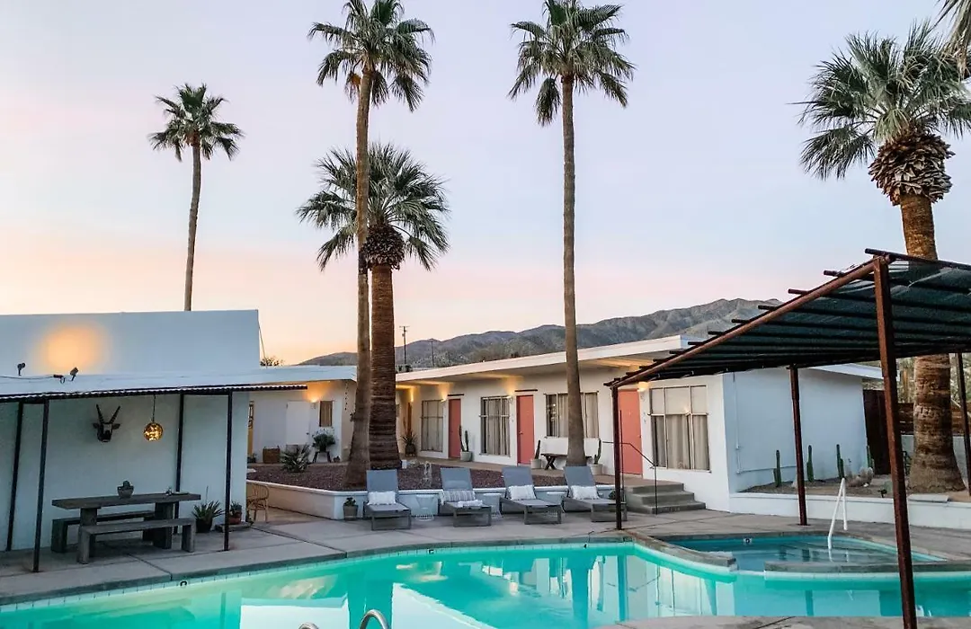 Miracle Manor Boutique Hotel & Spa is a 3-star wellness hotel in Desert Hot Springs, featuring naturally occurring healing hot springs, two mineral-filled pools, and a healing spa. This intimate 9-room property offers organic amenities and serene desert surroundings, ideal for relaxation and renewal.