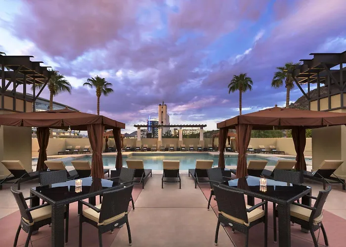 Tempe Mission Palms, a 4-star hotel with an 8.2/10 rating on Booking.com, provides a full-service experience in downtown Tempe. Guests can enjoy a rooftop heated pool, fitness center, and on-site dining at The Mission Grille. The hotel features modern Arizona decor and is in proximity to over 100 shops and restaurants.