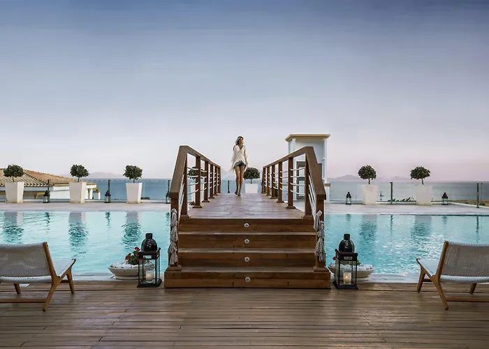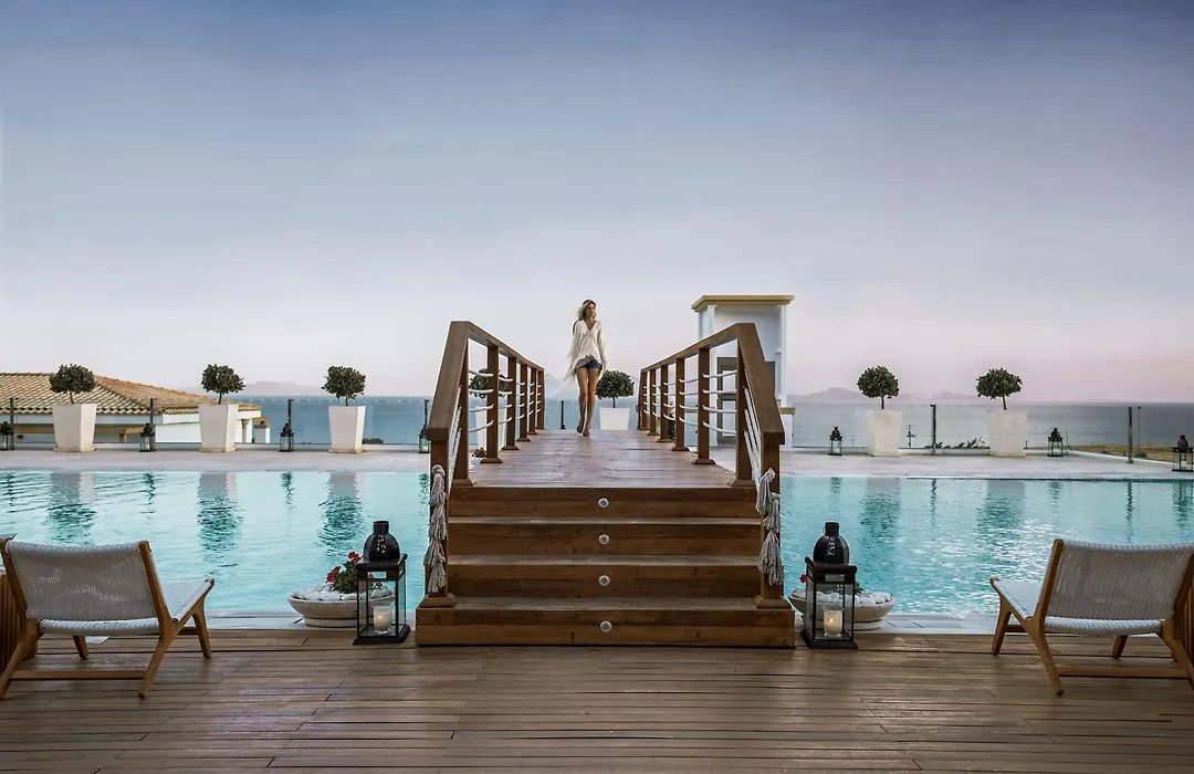 Mitsis Selection Blue Domes is a 5-star Pylion hotel featuring a beachfront location with a crystal-clear pebble beach and extensive leisure facilities. Guests can enjoy multiple dining options, a spa, and a range of activities for all ages.