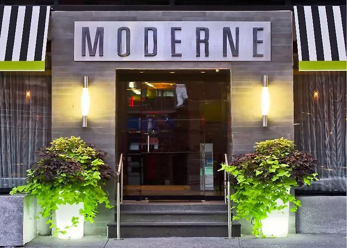 Moderne Hotel, a 4-star boutique hotel with a 7.9/10 rating, offers stylish accommodations in New York's Theatre District. With thoughtful design, pet-friendly facilities, and a 24/7 guest lounge featuring complimentary refreshments, it presents a modern urban retreat just steps from major attractions.