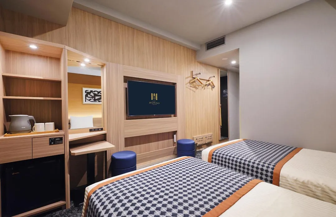 Rooms at Hotel Monday Asakusa include a flat-screen TV, safety deposit box, kettle, and private bathroom with a bidet and free toiletries. Each room is designed for comfort, featuring daily housekeeping to maintain cleanliness.