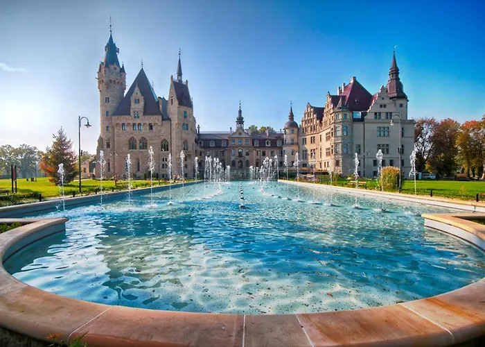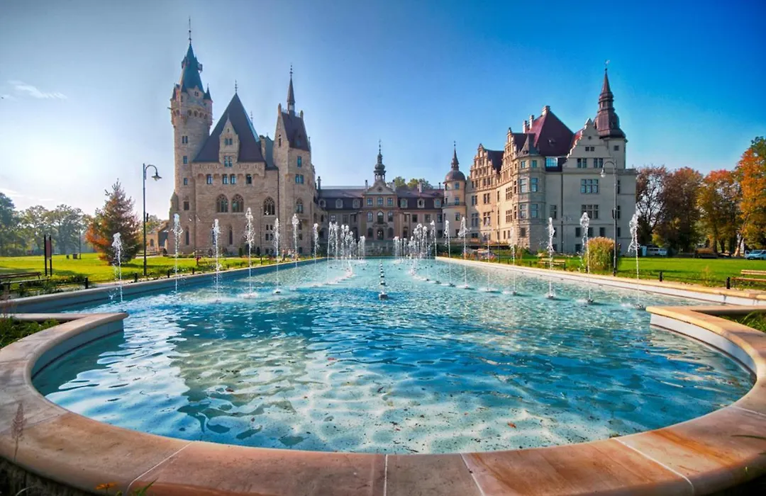 Moszna Zamek, rated 8.8/10 on Booking.com, features a rich historical setting complemented by modern amenities, including free WiFi and a beautiful 25 acre park. This family-friendly hotel offers an intriguing glimpse into the castle's heritage, with unique attractions like the Count's Academy and themed events.