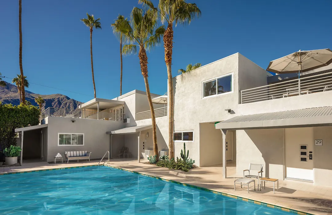 Leisure amenities at Movie Colony Hotel include an outdoor pool and hot tub, surrounded by a spacious courtyard. The hotel is also just a short distance from downtown Palm Springs, offering access to shopping, dining, and cultural attractions.