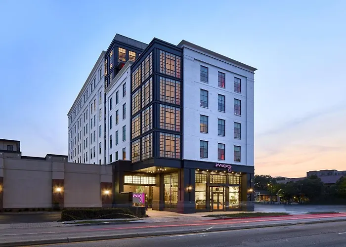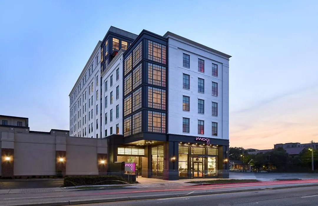 Moxy Charleston Downtown is a 3-star hotel featuring a rooftop terrace and a vibrant bar, offering a spirited guest experience. Guests receive a complimentary drink upon check-in and can enjoy craft coffee and local brews at Bar Moxy, open seven days a week.