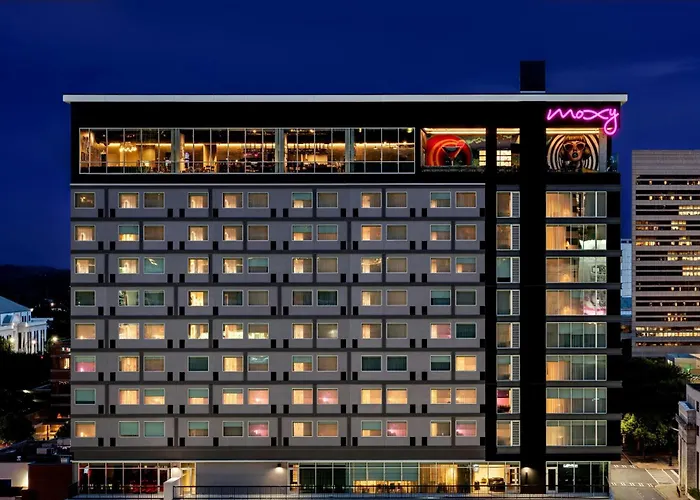 Moxy Charlotte Downtown is a 3-star hotel featuring modern design and essential amenities, including air conditioning and a terrace. The hotel accommodates those seeking access to cultural attractions in Downtown Charlotte, including Discovery Place and the Mint Museum of Art.