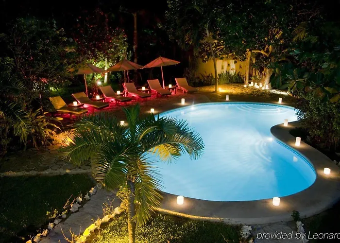 Guests at Na Balam can unwind at the hotel's outdoor pool surrounded by palm trees and hammocks. Spa services are available nearby, offering body treatments and facials in a serene, open-air environment. Yoga classes are also provided for guests looking to enhance their well-being.