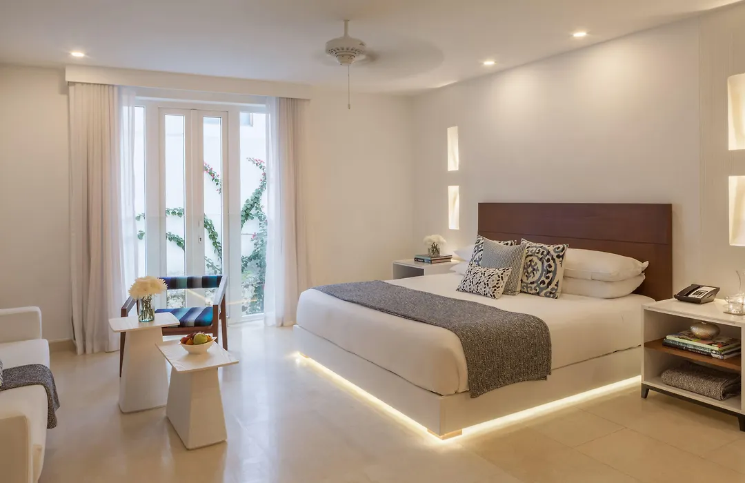 Nacar Hotel Cartagena, Curio Collection By Hilton features 49 air-conditioned rooms equipped with premium bedding, flat-screen televisions, and in-room coffee facilities. Some rooms boast balconies overlooking the inner vertical garden.
