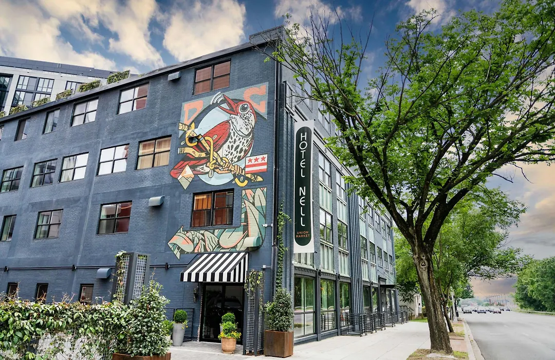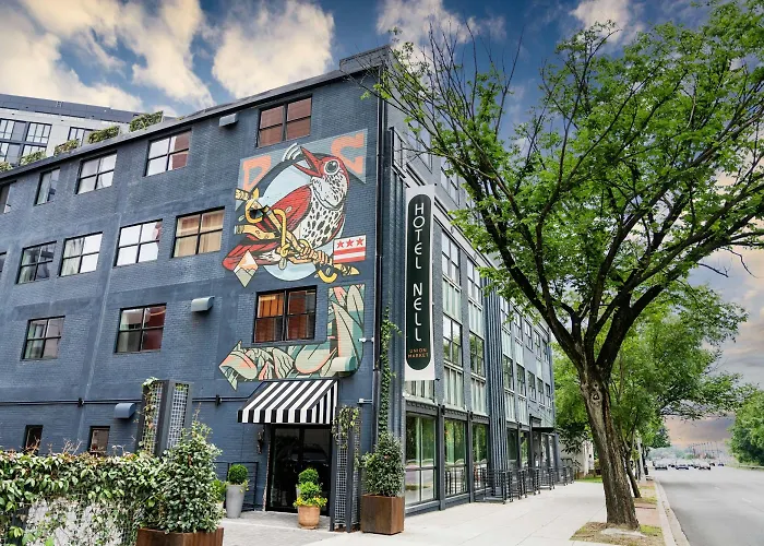 Experience contemporary comfort at Hotel Nell - Union Market, a 4-star boutique hotel showcasing a design-centric approach in the vibrant Union Market District. Amenities include a rooftop bar, Bolgiano's Pantry for health-conscious dining, and wellness activities such as yoga classes. Rating at 7.7/10 on Booking.com, this Washington hotel merges modern aesthetics with historic charm.