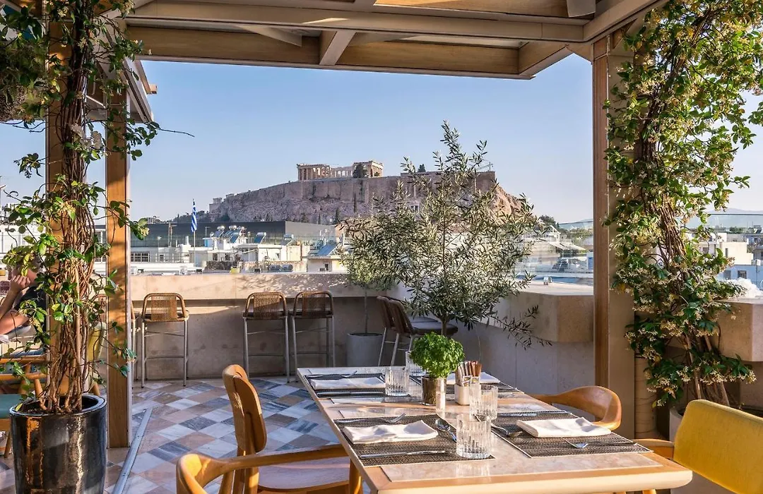 The hotel's stork rooftop bar restaurant offers Greek and Mediterranean flavors alongside stunning views of the Acropolis, ideal for breakfast and dinner. Local eateries such as Mani Mani and Smile Cafe are also within 0.2 miles for additional dining options.
