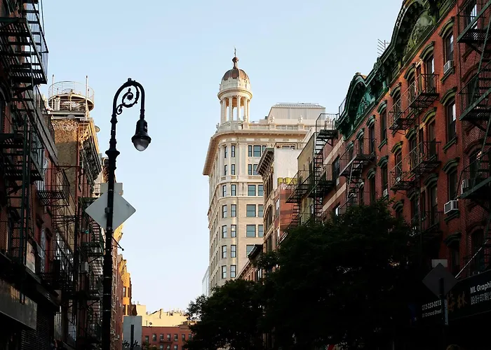 Nine Orchard, a 4-star hotel with a 9.2/10 rating on Booking.com, features a bar, terrace, and meticulously restored prewar architecture in an iconic landmark. Notable on-site amenities include a 24-hour front desk, room service, and free WiFi.