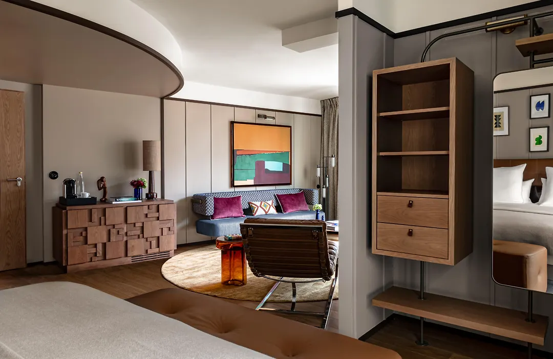 The hotel features elegantly designed rooms and suites with sumptuous furnishings, complimentary Wi-Fi, and flat-screen TVs. Bathrooms in luxury accommodations are clad in spotted black marble with high-end amenities. Suites provide separate living areas and may include balconies with city views.