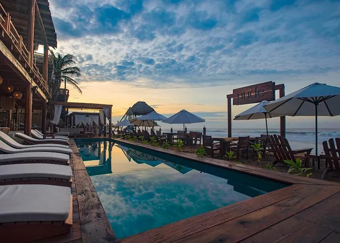 Hotel Nude Zipolite & Beach Club is a 3-star tropical haven featuring a unique architecture that highlights natural materials. Guests can enjoy two swimming pools, a beach area, and on-site dining with international and regional cuisine.