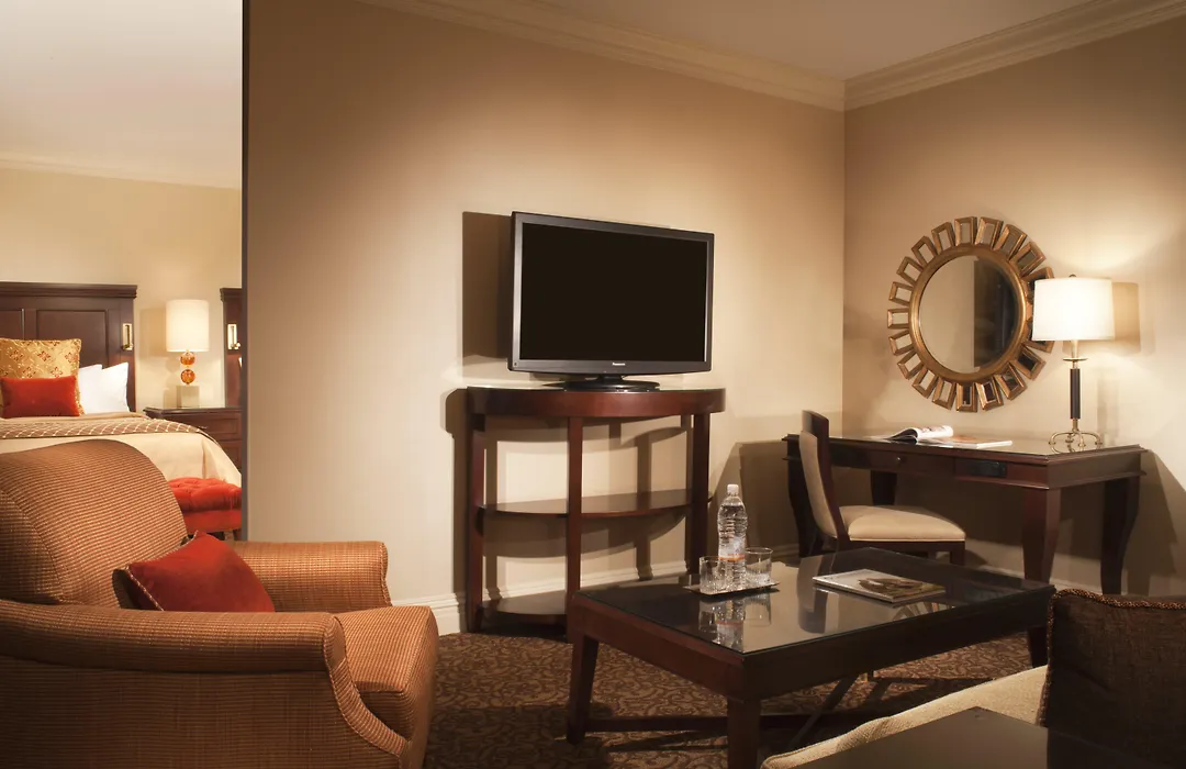 Accommodations at Omni William Penn Hotel include deluxe rooms and distinctive suites, featuring king, queen, or two double beds, all with luxurious cherry wood furnishings. Guests can also choose rooms with roll-in showers and height-adjusted sinks and toilets for added accessibility.