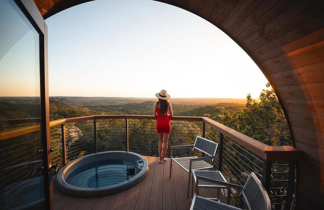 Onera Wimberley, rated 9.5/10 on Booking.com, offers 28 accommodations with outdoor private spa tubs. This sophisticated retreat combines modern amenities with natural surroundings, making it a distinguished option for guests seeking relaxation.