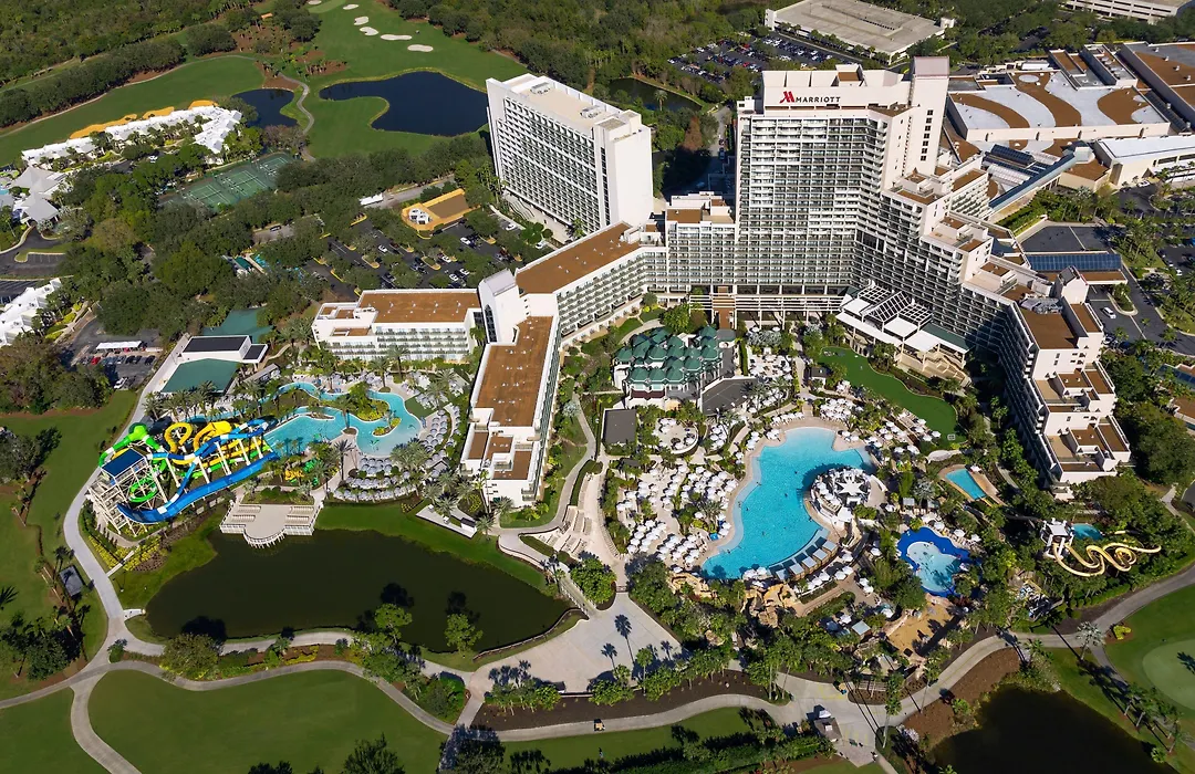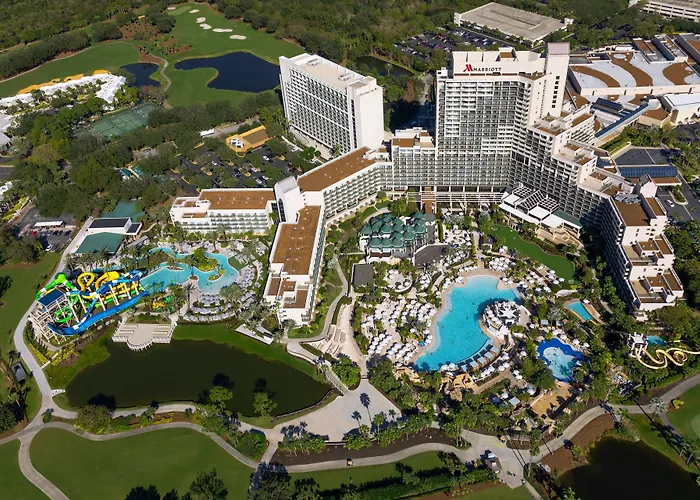 Orlando World Center Marriott features a sprawling outdoor waterpark, complete with a 575-foot-long lazy river and multiple pools. This 4-star hotel boasts 2010 renovated guest rooms and a range of on-site dining options. Guests can enjoy convenient shuttle service to nearby attractions, including Walt Disney World.