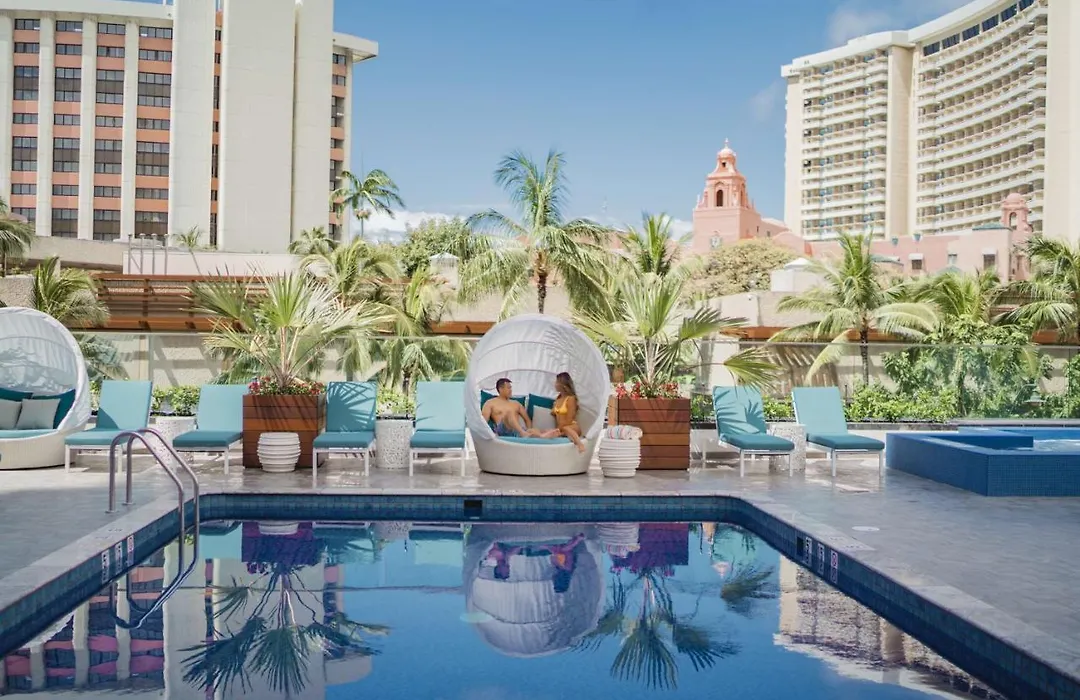 Leisure activities feature an outdoor pool and live entertainment, including music from local artists. The hotel also offers a variety of services, such as a concierge desk to assist with local adventures and activities on Oahu.