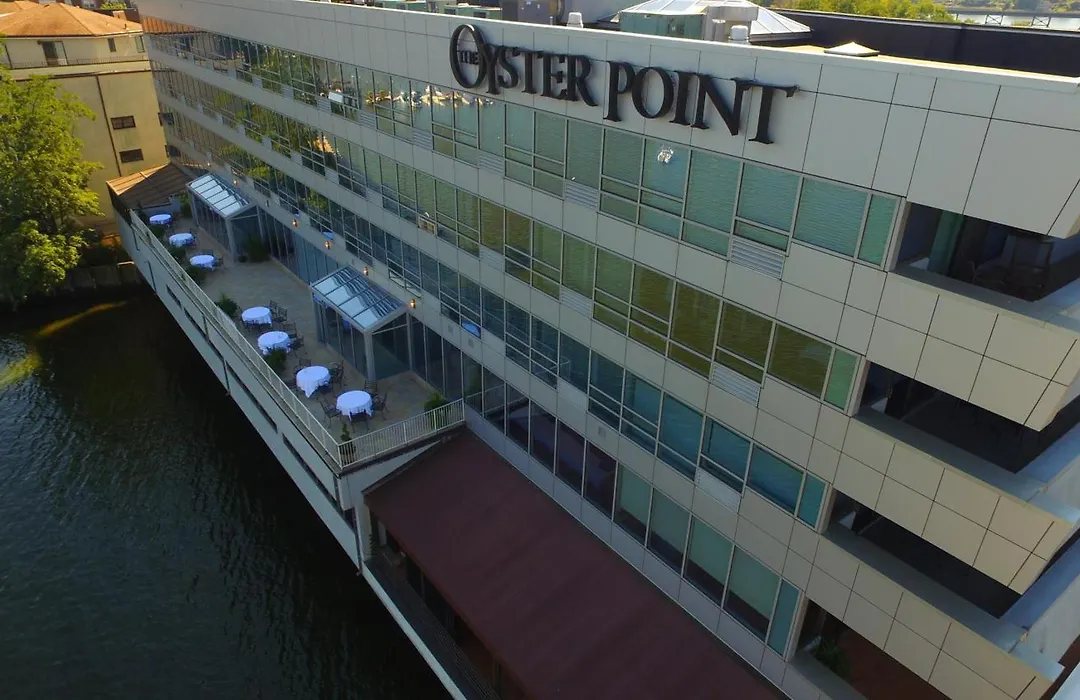 Oyster Point Hotel serves as a venue for art exhibitions, showcasing works from both emerging and established artists throughout public spaces. Corporate events can be accommodated with over 9000 square feet of meeting space, complemented by an on-site coordinator for effective planning.