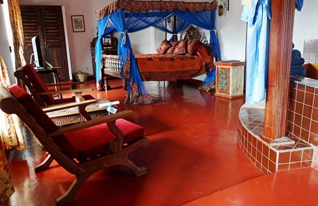 Rooms at Zanzibar Palace Hotel reflect a mix of Arabian, Indian, and English design, with each of the nine rooms boasting unique decor and modern amenities. Guests will find features such as air conditioning, WiFi, LCD flat-screen cable televisions, and high-pressure water. The hotel offers various suite types, including romantic suites and grand suites, catering to couples and families alike.