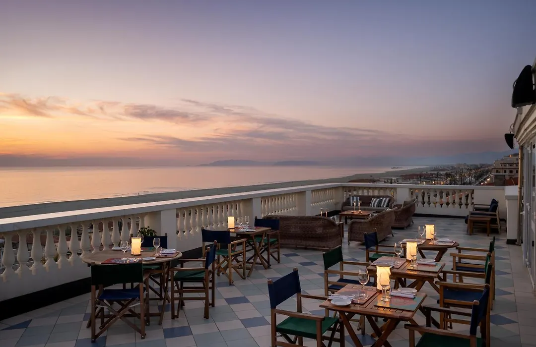 Palace Hotel, a 4-star property with an 8.9/10 rating on Booking.com, features 73 guest rooms and a large public park area for pets. The hotel offers a spacious terrace with panoramic views of the coastline and an on-site restaurant serving Tuscan specialties.