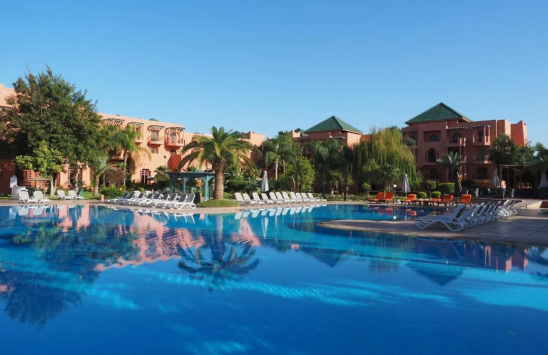 Palm Plaza Marrakech, a 5-star Marrakesh hotel, offers a blend of comfort and luxury in the Agdal district, featuring a grand entrance hall and extensive leisure facilities. Guests can enjoy amenities such as a large outdoor pool and a spa with wellness options.