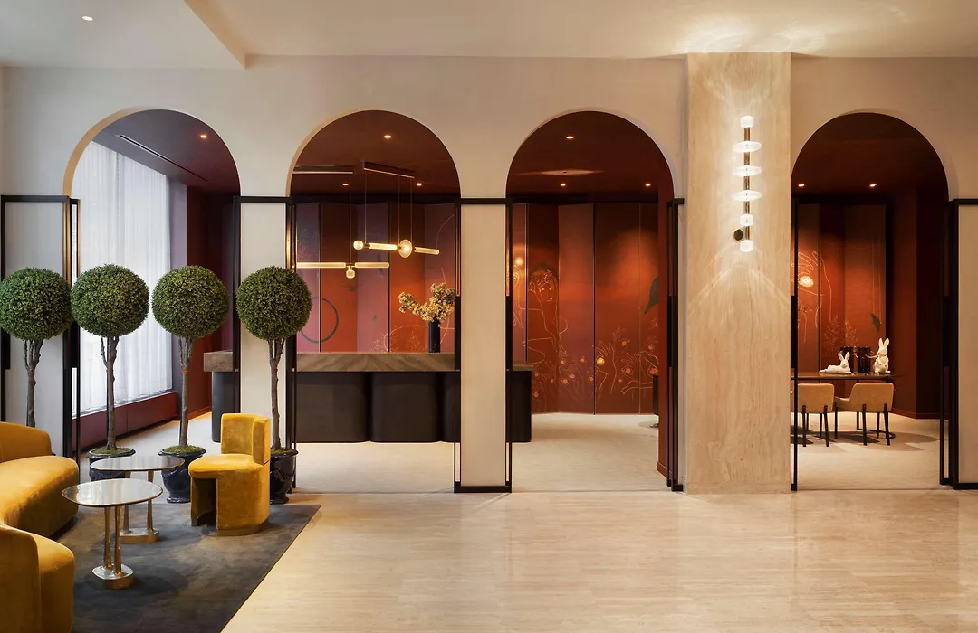 Diverse dining options at Park Lane include the Parisian-inspired lounge Rose Lane and casual eatery Calvert's, both serving breakfast, lunch, and dinner. The rooftop lounge, Darling, offers crafted cocktails and bites while overlooking the park. Breakfast for two is included in select packages.