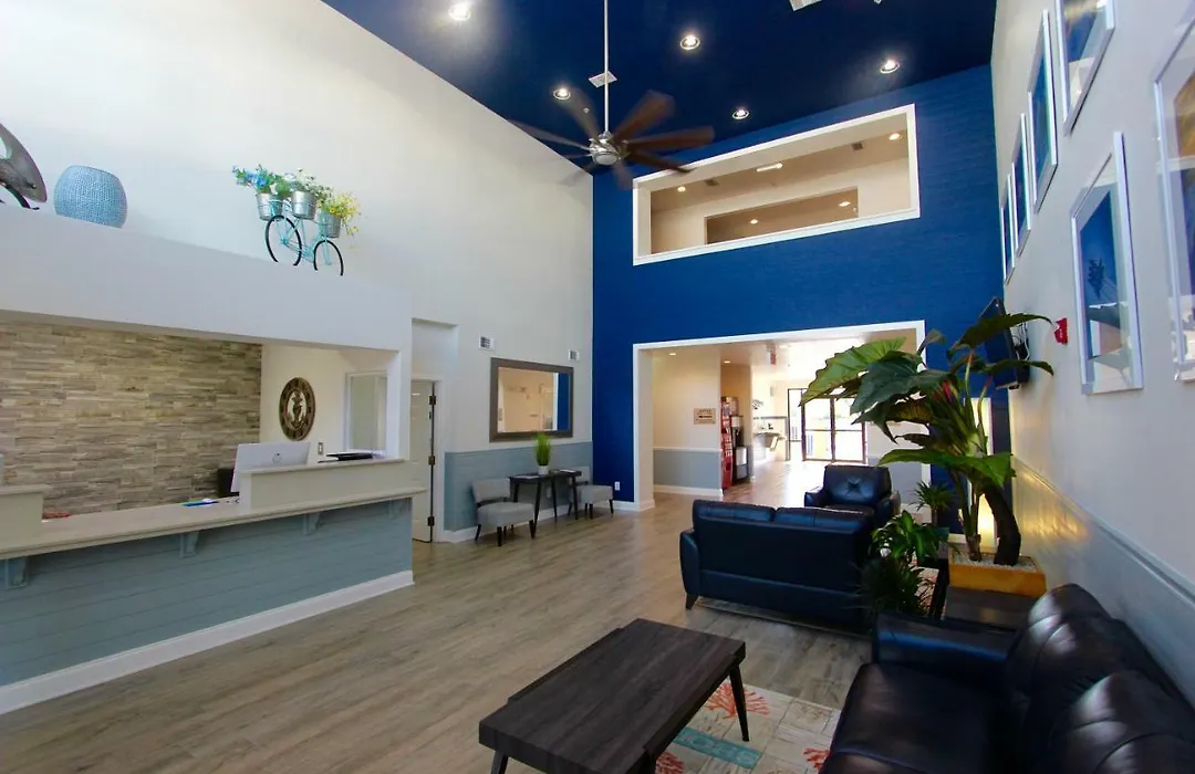 Hotel Pensacola supports business needs with a small conference room available on-site. Transportation details note that the nearest airport is Pensacola International Airport, located approximately 6 miles away. It is also 8 miles from cultural sites such as Saenger Theatre and Historic Pensacola Village.