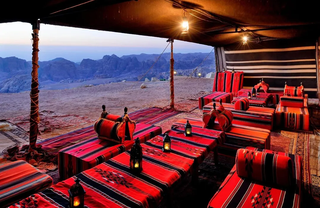 Dining options include Dushara Restaurant, known for its extensive buffet of Arabic and international dishes, and Hala Hala Restaurant, specializing in traditional Arabic cuisine like mansaf. Guests can also enjoy late-night food at the Al Matal Bedouin Tent, enhancing their culinary experience.