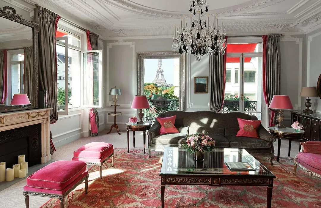 Rooms at Hotel Plaza Athenee range from elegant Classic Rooms to luxurious suites, many with views of Avenue Montaigne or the Eiffel Tower. The interior design reflects a blend of Parisian opulence and modern Art Deco elements, crafted by renowned designers. Each accommodation is equipped with complimentary Wi-Fi, a minibar, and designer linens.