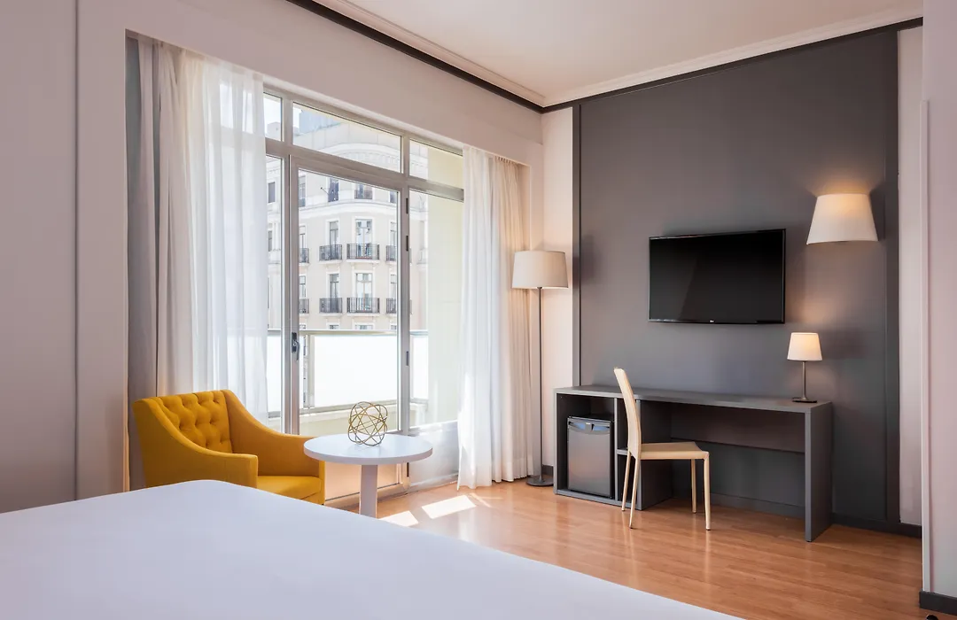 Rooms in Hotel Madrid Plaza De Espana, Affiliated By Melia include 88 standard rooms, 22 superior rooms, and 2 Junior Suites. Each room features air conditioning, a flat-screen TV, mini-bar, and private bathroom with toiletries.