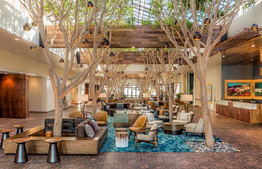 The Portola Hotel & Spa offers 379 coastal-inspired guest rooms and suites, featuring modern amenities such as air conditioning, USB outlets, and 49" flat-screen televisions. Newly renovated premium rooms include options with one king bed or two queen beds and eco-friendly bath amenities. Accommodations reflect the colors and textures of Monterey's coastal landscape.