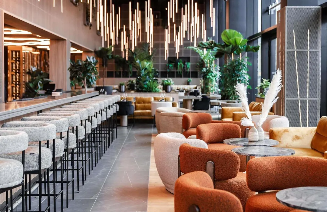 Pullman Lyon (4-star) offers modern accommodations with amenities including a restaurant and a bar. The hotel is rated 9.1/10 on Booking.com and features spacious rooms equipped with soundproofed walls and flat-screen TVs.