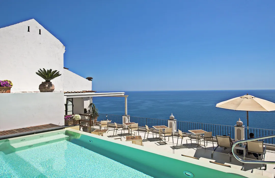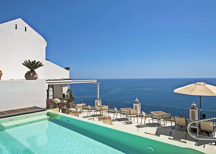 Hotel Punta Regina offers elegant rooms with terraces and balconies that overlook the colorful architecture of Positano. This 4-star hotel features a rooftop relaxation pool and a well-regarded on-site dining experience, promising a refined and cozy atmosphere. It is rated 9.4/10 on Booking.com.