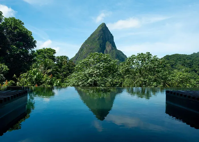 Rabot Hotel From Hotel Chocolat is a 4-star Soufriere hotel featuring 25 private luxury lodges amidst the Rabot Estate's lush rainforest. Guests can benefit from an infinity pool, on-site Cacao Spa and access to exclusive cacao-inspired dining experiences. Additional amenities include a twice-daily shuttle to Anse des Pitons beach and curated wellness packages.
