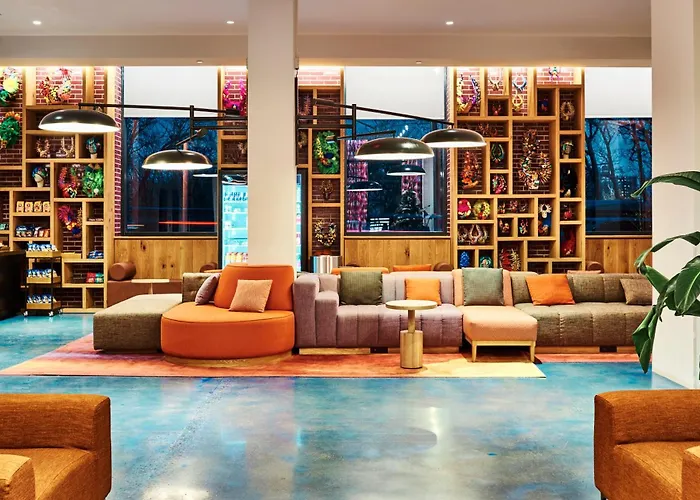 Radio Hotel is a modern 4-star hotel situated in the heart of Washington Heights, featuring a vibrant design, 221 guest rooms with wall-to-wall windows, a rooftop event space, and an outdoor courtyard. The hotel offers amenities such as a fitness center, JALAO restaurant serving Dominican-inspired cuisine, and El Patio, a lively outdoor area.