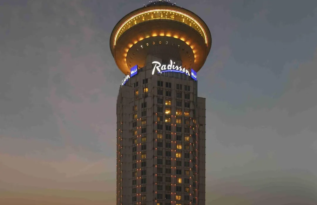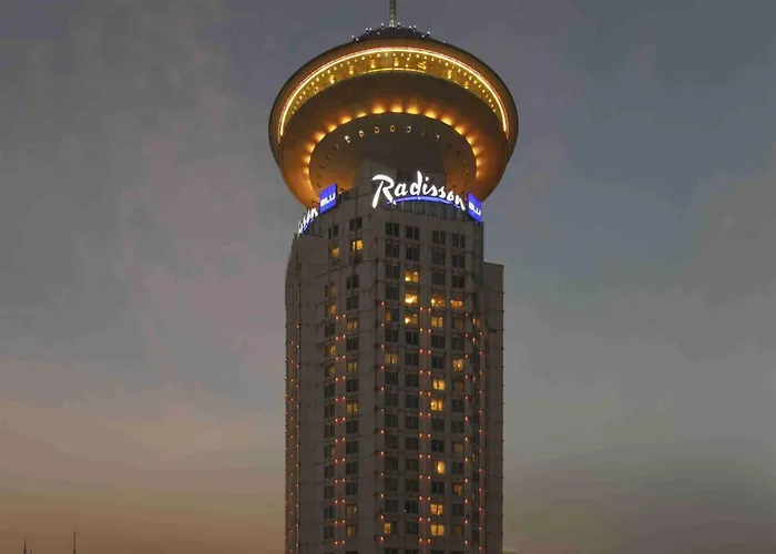 Dining options at the Radisson Blu include two restaurants and two bars. Guests can indulge in a variety of Western favorites and enjoy drinks at the Lobby Lounge or the Sky Dome Bar, which offers panoramic views of the city.