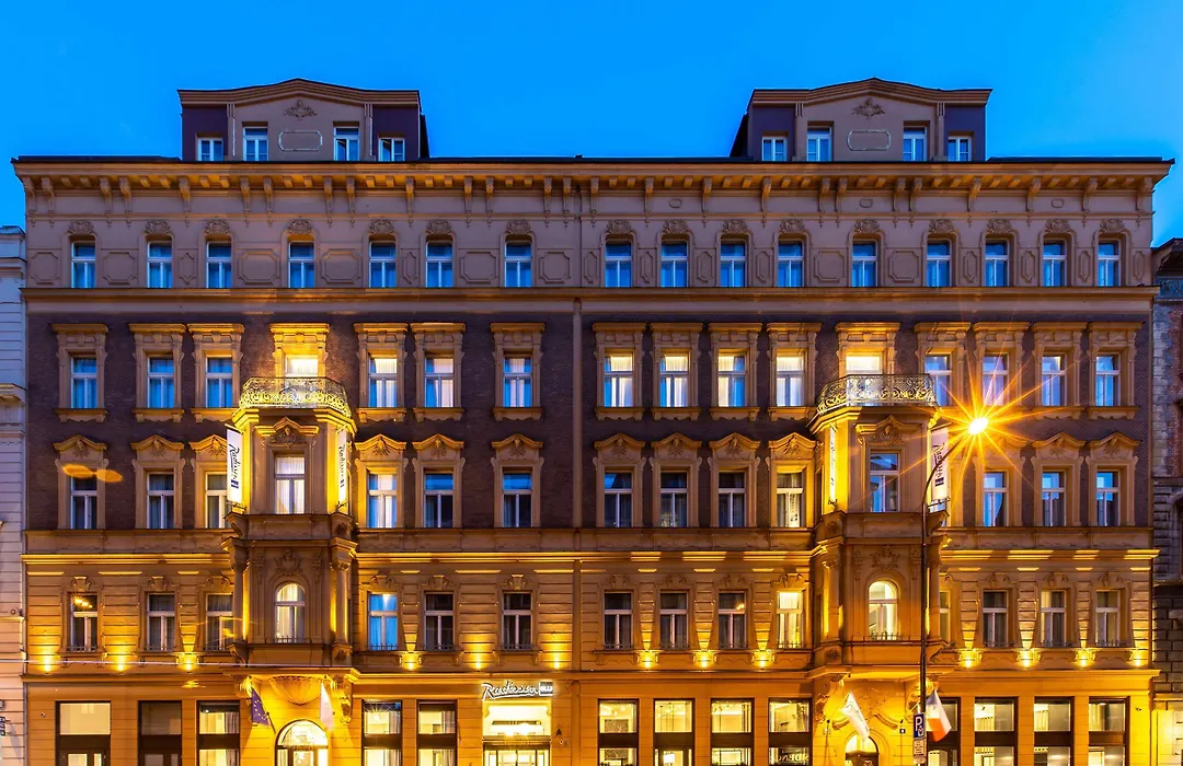 Radisson Blu Hotel Prague (5-star, 8.8/10 on Booking.com) offers elegant accommodations within a historic Art Nouveau building. The hotel features a bar, restaurant, 24/7 fitness center, and valet parking. Guests can expect modern amenities and outstanding service.