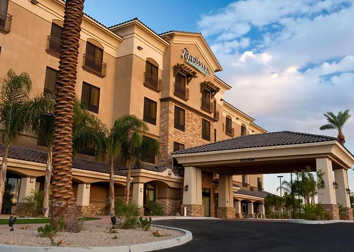 Radisson Hotel Yuma, a 3-star hotel with an 8.9/10 rating on Booking.com, features a full-service restaurant and offers a free transfer service to Yuma International Airport, located just 4 miles away. This pet-friendly establishment provides spacious accommodations with modern amenities, including free Wi-Fi and mini-fridges.