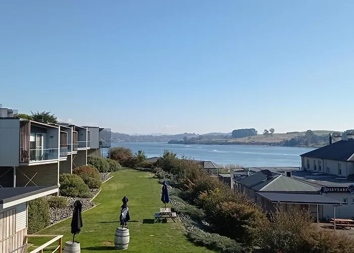 Rosevears Riverview Hotel, a 4-star property rated 9.0/10 on Booking.com, features contemporary waterfront accommodations and a diverse dining experience. Enjoy 26 modern rooms, each with a luxurious king-size bed and stunning views of the Tamar River.