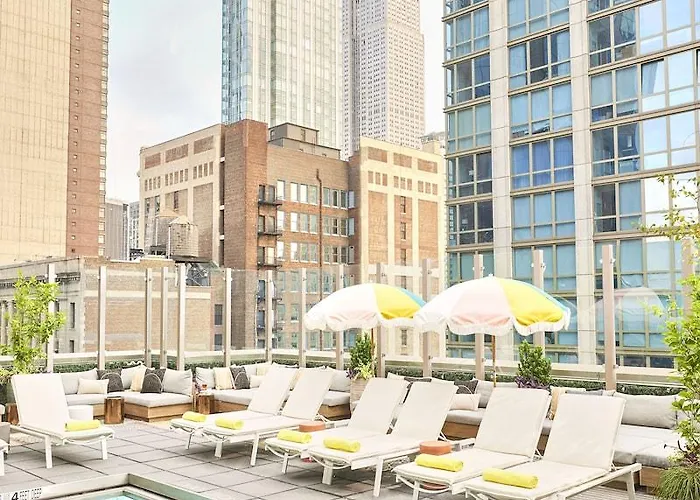 The hotel's rooftop pool, situated on the 20th floor below the Empire State Building, features a 40-foot heated indoor/outdoor pool and a deck for sunbathing. Royalton Park Avenue also provides fitness facilities and concierge services for guests' convenience. The hotel organizes local events and offers access to cultural experiences throughout New York City.
