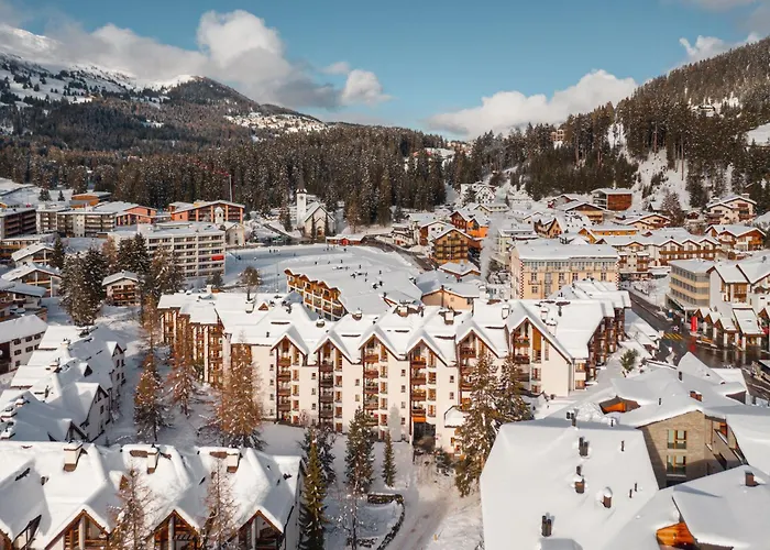 Hotel Schweizerhof Lenzerheide, a 4-star family-friendly accommodation rated 9.4/10 on Booking.com, features a unique wellness concept centered around its 16145.9 ft² spa area. The hotel is notable for its focus on sustainability and the integration of art throughout its design.