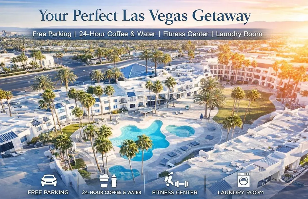 Serene Vegas Boutique Hotel Las Vegas offers a tranquil environment just steps from the bustling Virgin Casino. This 3-star Las Vegas hotel features contemporary decor, a large courtyard with two outdoor pools, and suites equipped with modern amenities. Ideal for travelers seeking a peaceful retreat in a vibrant city.