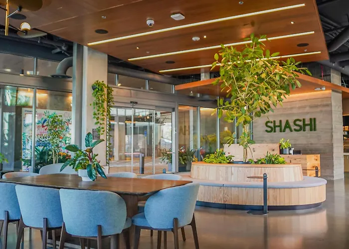Shashi Hotel Mountain View Palo Alto, a 5-star urban resort, offers contemporary accommodations near major tech campuses, featuring an outdoor swimming pool, a wellness center, and a restaurant. The hotel provides modern conveniences including a fitness center, free WiFi, and bicycle rentals.