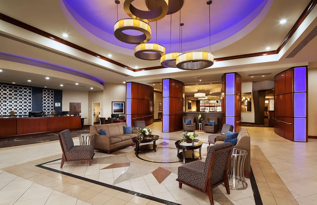 All 280 rooms include premium bedding, air conditioning, and laptop-compatible safes. Each room features a flat-screen TV with cable channels, and private bathrooms are equipped with complimentary toiletries and hair dryers.
