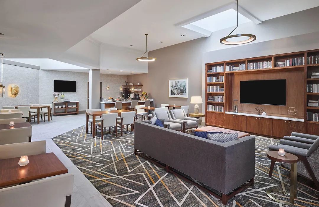 The Sheraton Portland Airport Hotel has extensive meeting and event spaces totaling 22500 square feet, making it suitable for business travelers and group events. The fitness center includes modern equipment for maintaining workout routines.