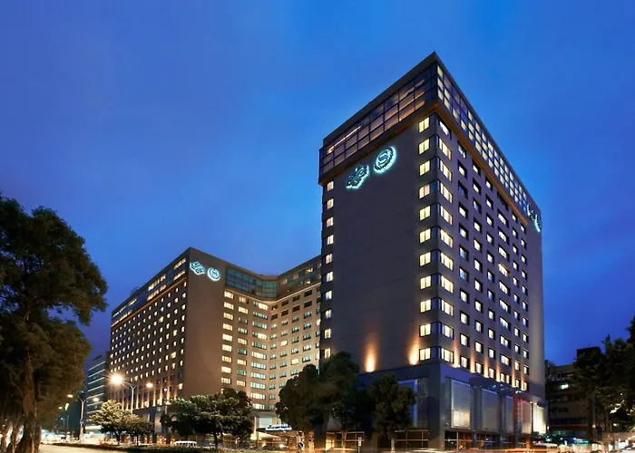 Sheraton Grand Taipei Hotel offers 5-star luxury in the heart of the city's commercial district with 688 luxury rooms and suites featuring Chinese Modern Decor. Amenities include a day spa, fitness facilities, and an outdoor pool, along with nine dining options catering to diverse culinary preferences.