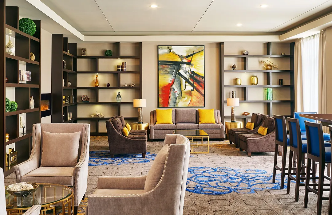 Rooms at Sheraton Lisle Naperville Hotel feature air conditioning, flat-screen TVs, mini-refrigerators, and ergonomic workspaces with free Wi-Fi. Guests can opt for Executive Suites with separate living areas and exclusive Club Lounge access.