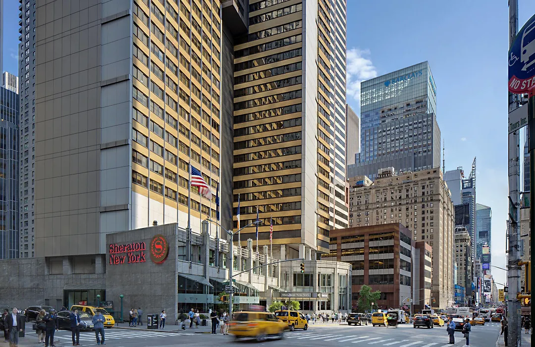 Sheraton New York Times Square Hotel is a 4-star urban retreat in Midtown, NYC, featuring convenient on-site dining options and extensive event space. The hotel offers a 24-hour fitness center, including access to Peloton bikes.