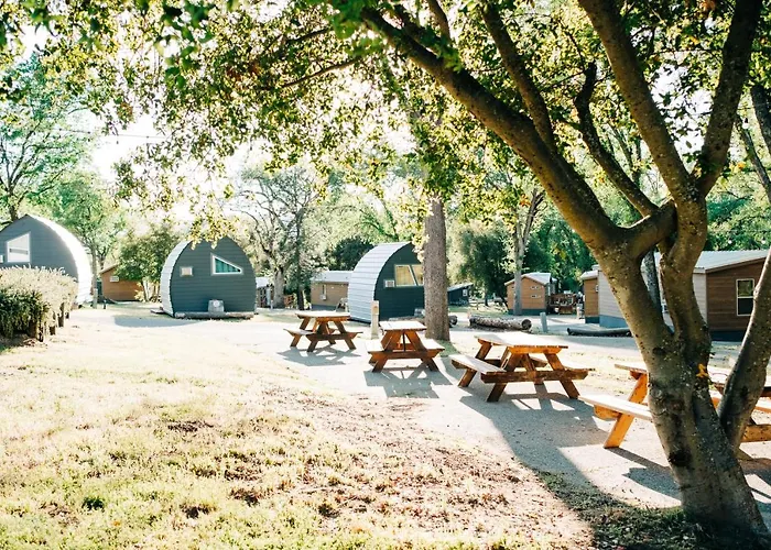 Sierra Meadows, a 3-star hotel with a 9.2/10 rating, offers a unique glamping experience transformed from a former golf course and RV park. Guests can enjoy spacious cabin accommodations and access to expansive natural surroundings.