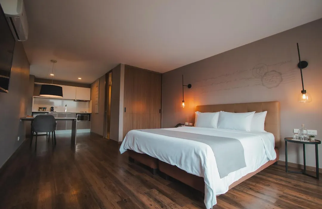 Sites Hotel is a 5-star property in El Poblado, Medellin, rated 8.8/10 on Booking.com. The hotel features 60 modern rooms equipped with kitchen facilities, a gym, and an auditorium for business meetings. Guests can enjoy a buffet breakfast and have access to laundry services.